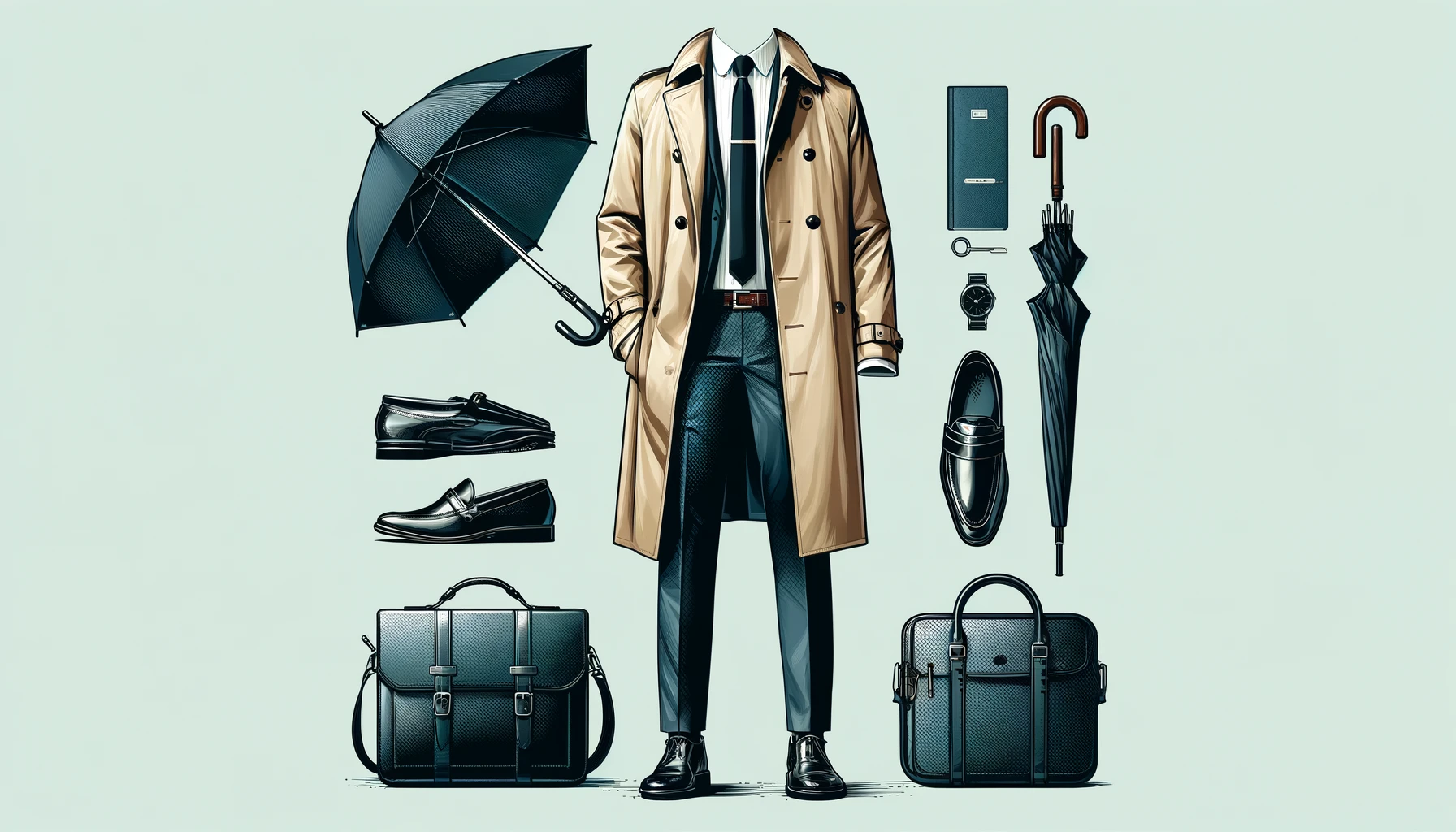 장마철에도 격식을 갖춰야 한다면, 방수 트렌치코트와 깔끔한 슬랙스, 방수 로퍼를 추천합니다. 여기에 우산과 방수 서류 가방을 더해 완벽한 오피스 룩을 완성해 보세요.
