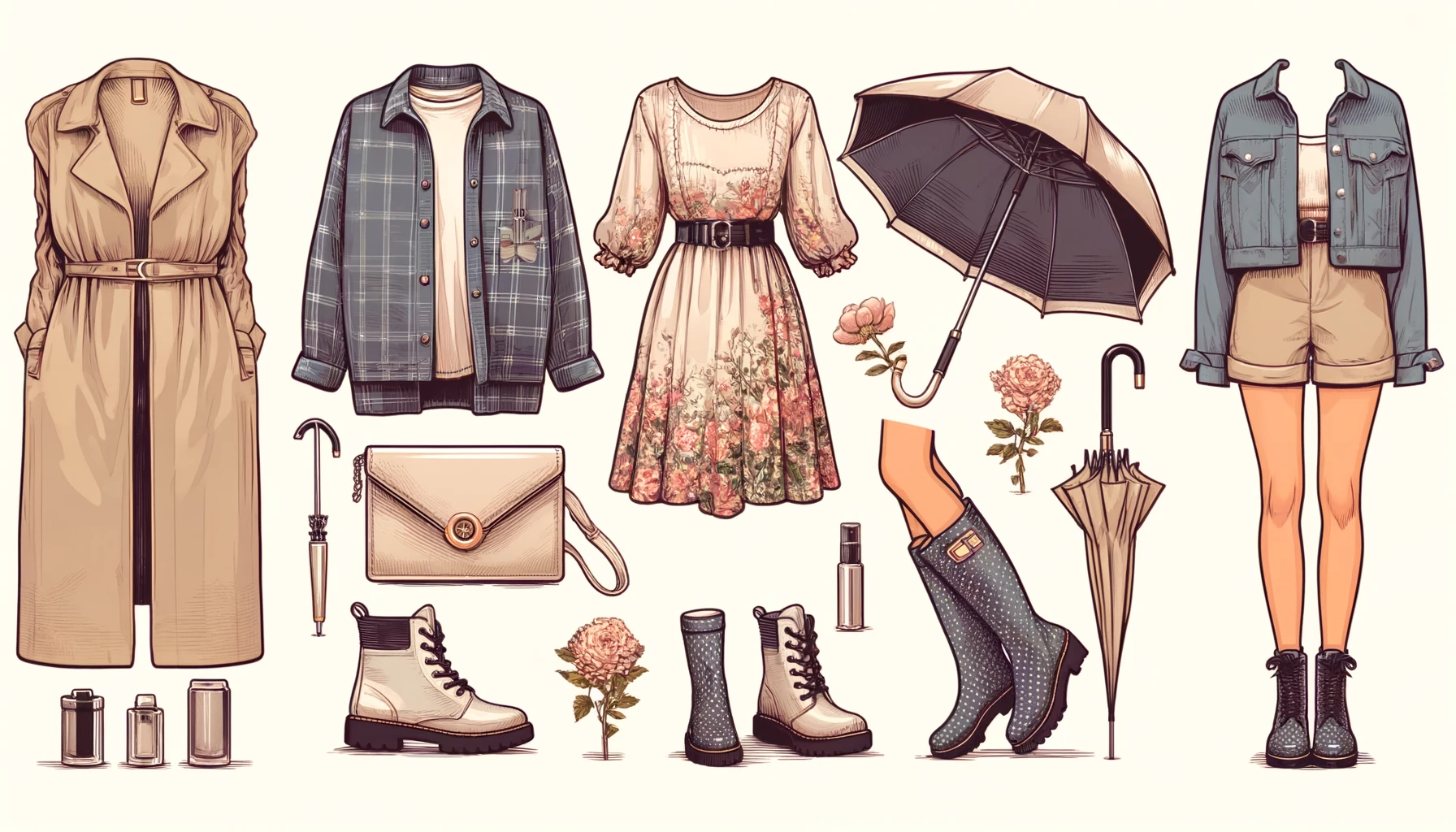 ● 장화: 스타일리시하면서도 비에 젖지 않도록 발을 보호합니다.